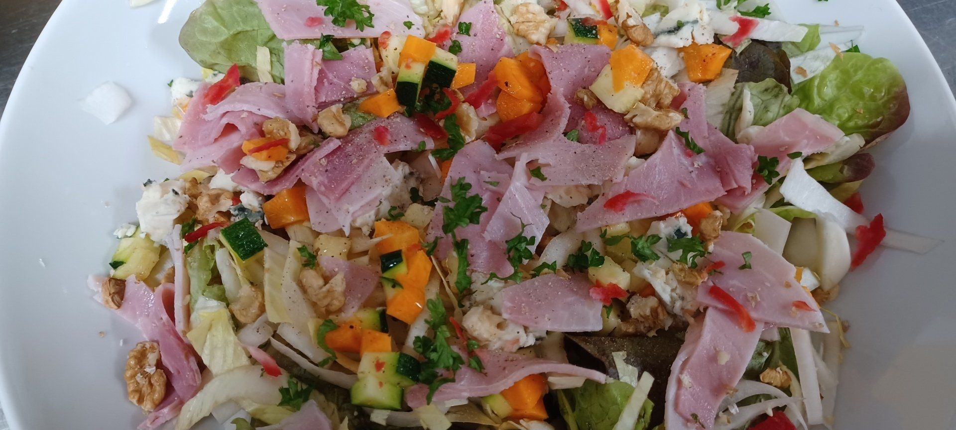 - Entrées : Bruschettas, salades (nova), tartine de Cabécou au jambon de pays